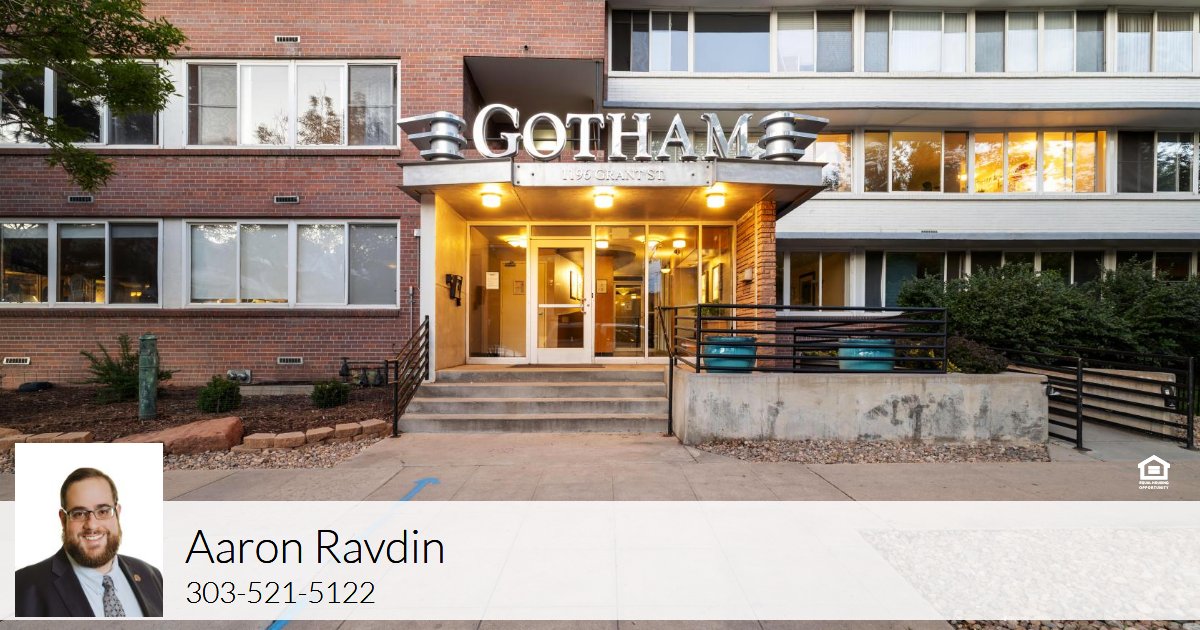 Welcome to Gotham City Condos in the heart of Historic Capitol Hill! This gorgeous, RARE 1-bedroom condominium features beautiful mountain, city, and sunset views. This home boasts the third-largest floor plan and is complete with one of only six private, covered balconies! Inside, you are greeted by a living room filled with an abundance of natural light from large panoramic windows and 8 ft. ceilings. Step out onto your balcony and enjoy your favorite drink while taking in the views! The airy and well-maintained kitchen features a gas stove and provides plentiful storage options with a distinct dining space nearby. A deeded parking space, conveniently located right behind the building, means no need to risk street parking. Don’t miss the abundant storage in the unit and fresh new paint throughout! Additional deeded storage is in the basement. The primary bedroom features a spacious closet with mirrored doors, plush carpet, and a ceiling fan. The updated full bathroom includes a linen closet. Gotham City Condos offers a wealth of amenities, including a modern fitness facility, FREE laundry, Garden patio, secured fob entry, an elevator, and a secured mail room for package deliveries. The HOA dues include electricity, water, sewer, trash, gas for cooking, laundry, routine cleaning of common areas, gym access,use of the outdoor garden space, and building maintenance/facilities. Experience an active and engaging community with events throughout the year, like Ice Cream Socials and Longest Putt Competitions! Located just 2 blocks south of the Capitol and Civic Center Park, the condo is also only 5 blocks from Trader Joe's, One Block from City O' City and within walking distance of parks, shopping, restaurants, entertainment, public transportation, and much, much more. Do not miss this beautiful, ideally located condo. Book your showing before it's too late!